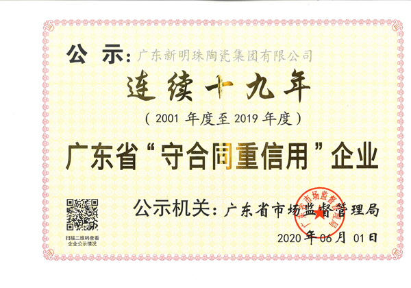 (2001-2014)连续14年广东省守合同重信用企业